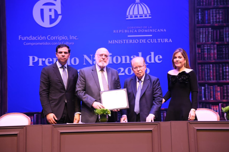 Junto a ellos, participaron el ministro de Cultura, Roberto Ángel Salcedo, el director de la Academia Dominicana de la Lengua, Bruno Rosario Candelier, y un representante de la Fundación Corripio. El premio consiste en un diploma de honor y una dotación económica de dos millones de pesos dominicanos.