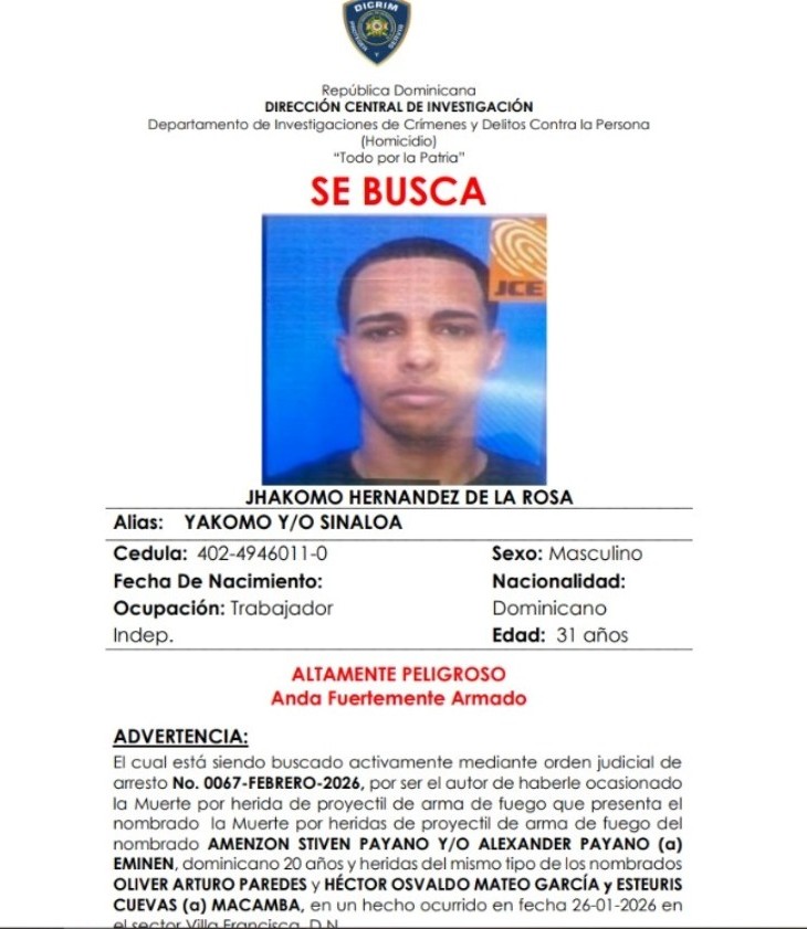 Las autoridades informaron además que Jhakomo Hernández de la Rosa figura como prófugo de la justicia por un caso previo de homicidio, razón por la cual se activó su localización a nivel nacional y se le exhortó a entregarse por las vías correspondientes.